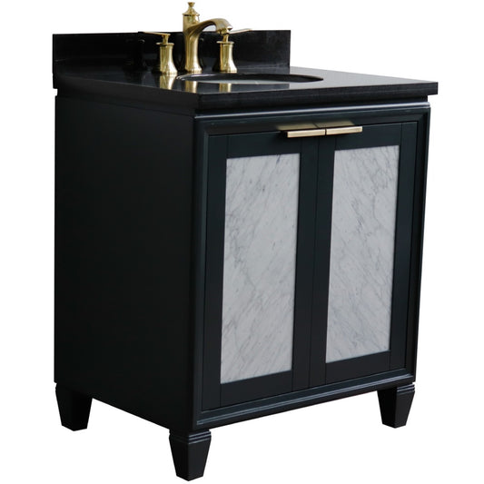 31" Single sink vanity in Dark Gray finish with Black galaxy granite with oval sink