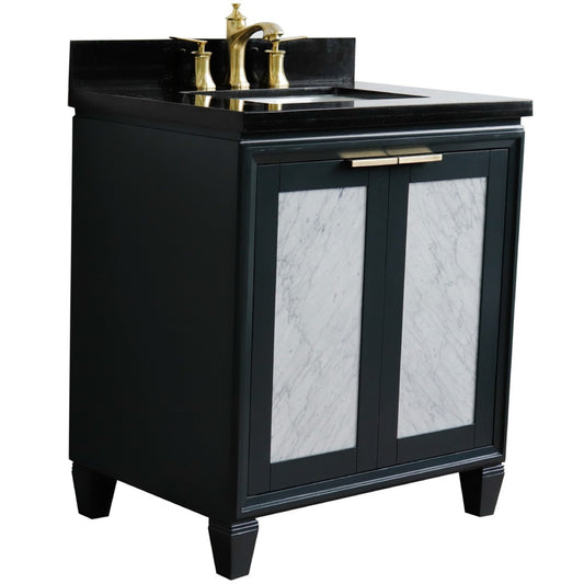 31" Single sink vanity in Dark Gray finish with Black galaxy granite with rectangle sink