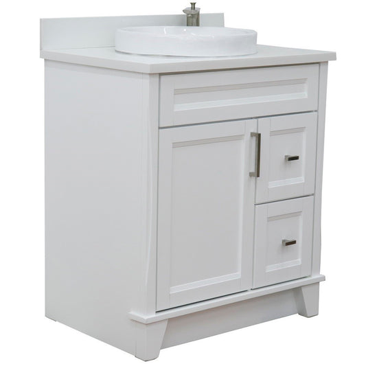 31" Single sink vanity in White finish with White engineered stone with round sink