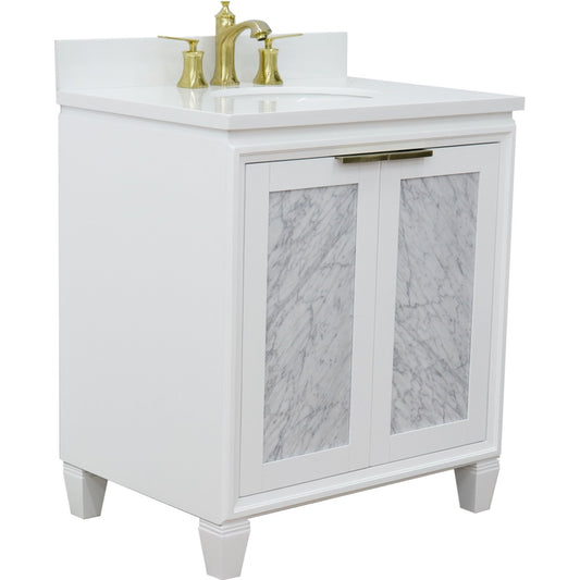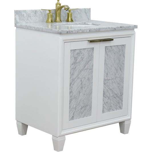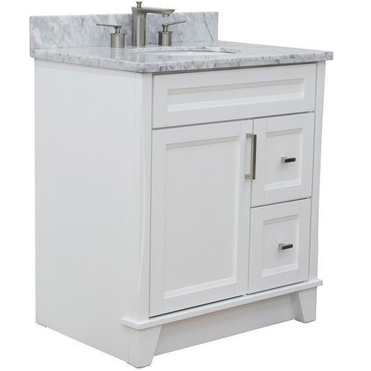 31" Single sink vanity in White finish with White Carrara marble with oval sink