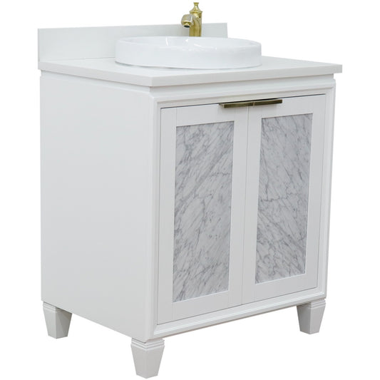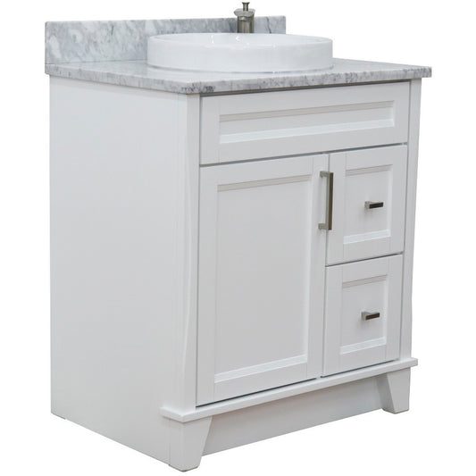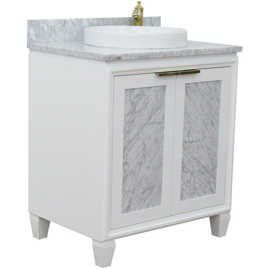 31" Single sink vanity in White finish with White Carrara marble with round sink