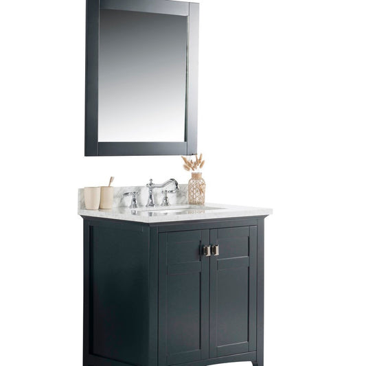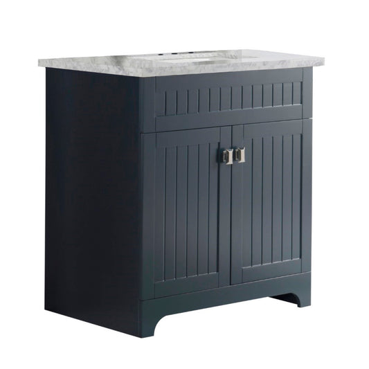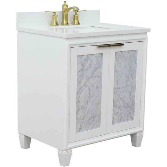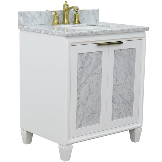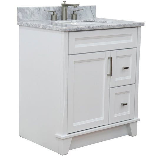 31" Single sink vanity in White finish with White Carrara marble with rectangle sink
