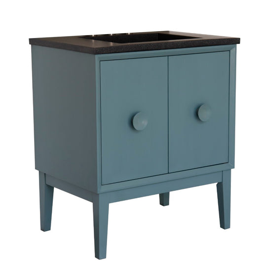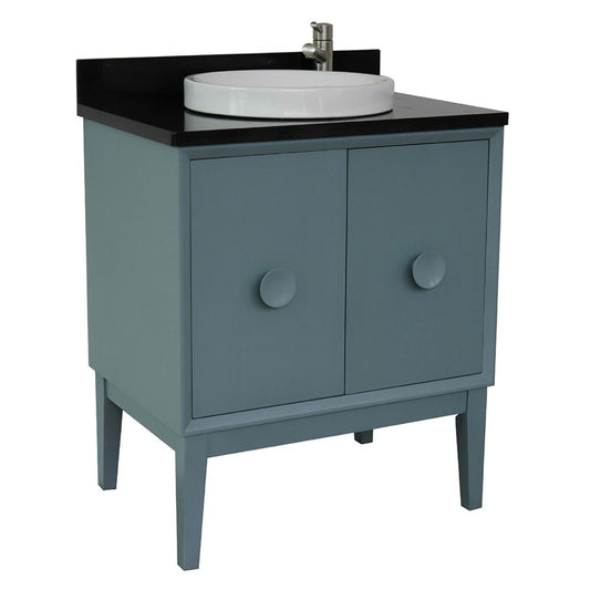 31" Single vanity in Aqua Blue finish with Black Galaxy top and round sink