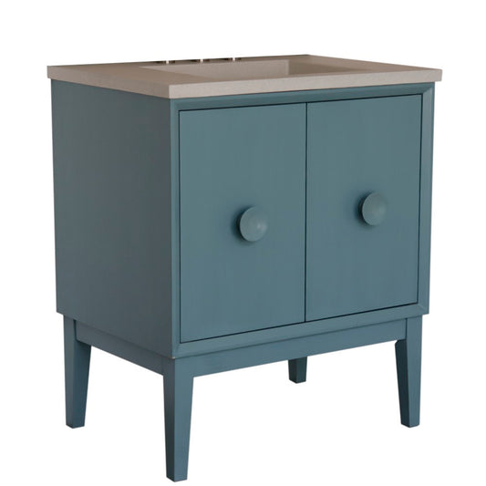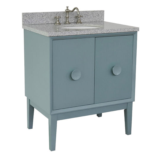 31" Single vanity in Aqua Blue finish with Gray granite top and round sink