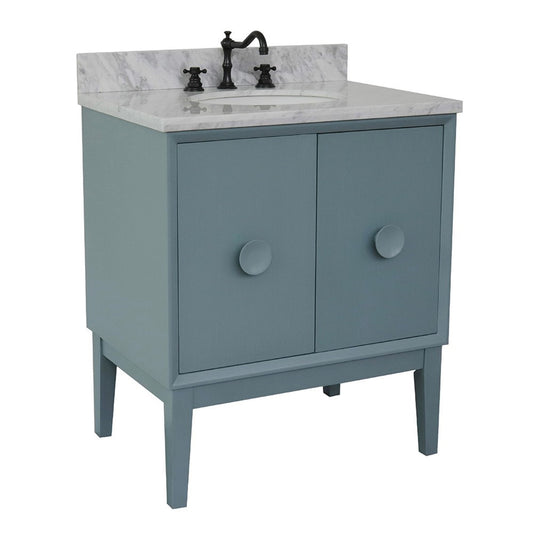 31" Single vanity in Aqua Blue finish with White Carrara top and oval sink