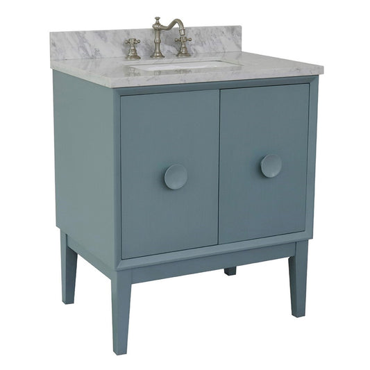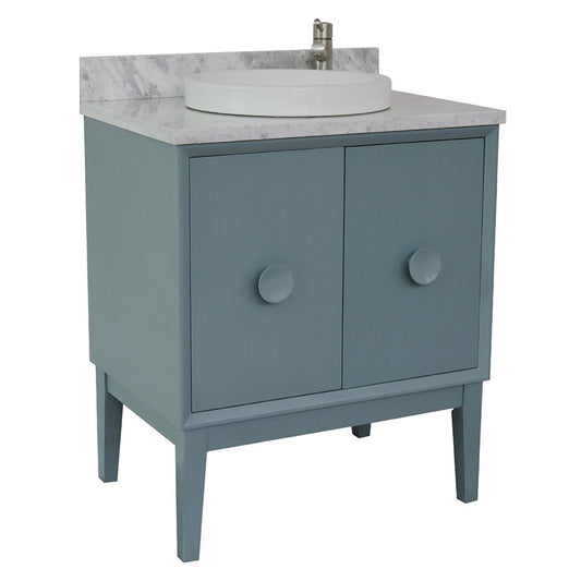 31" Single vanity in Aqua Blue finish with White Carrara top and round sink