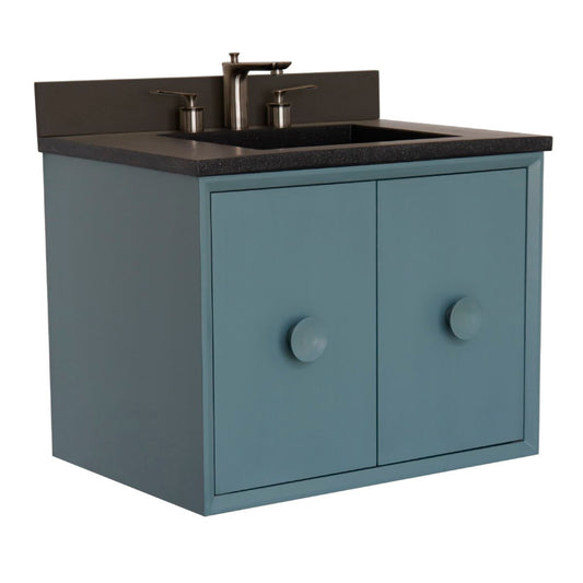 31" Single vanity in Aqua Blue finish with Black Galaxy top and rectangle sink
