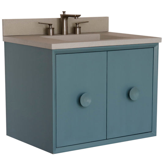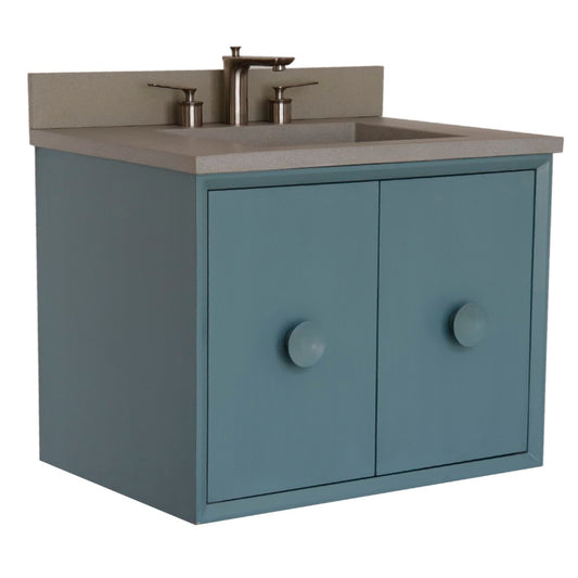 31" Single Vanity in Aqua Blue Finish with Gray Concrete Top and Rectangle Sink