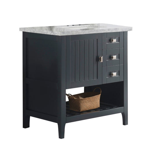 31" Single vanity in Aqua Blue finish with White Carrara top and rectangle sink