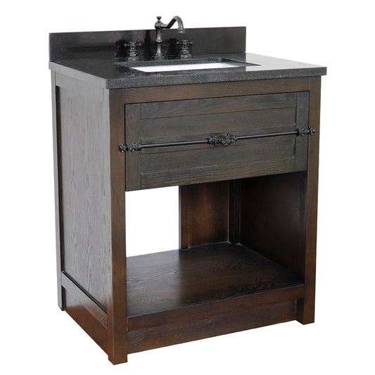 31" Single vanity in Brown Ash finish with Gray granite top and rectangle sink