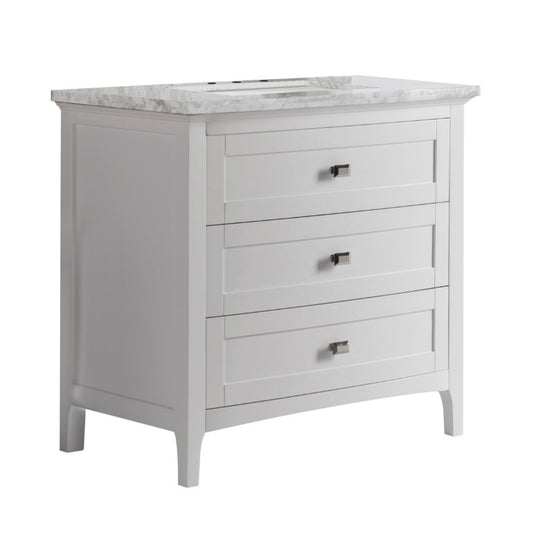 36" SINGLE VANITY IN WHITE WITH WHITE CARRRA MARBLE TOP