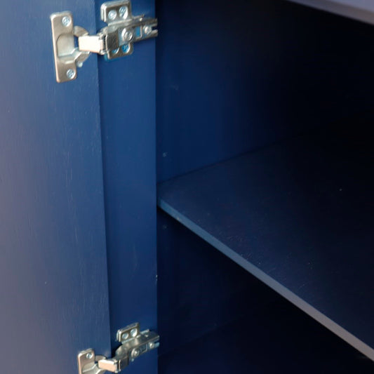 37" Single sink vanity in Blue finish with Gray granite and Left door/Center sink