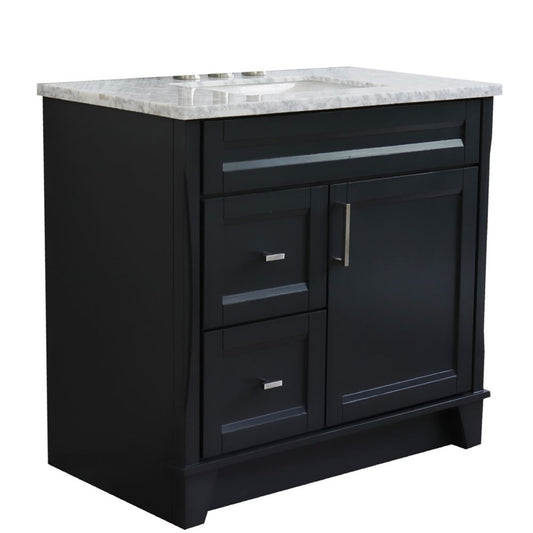 37" Single sink vanity in Dark Gray finish with White Carrara marble and CENTER round sink RIGHT drawers