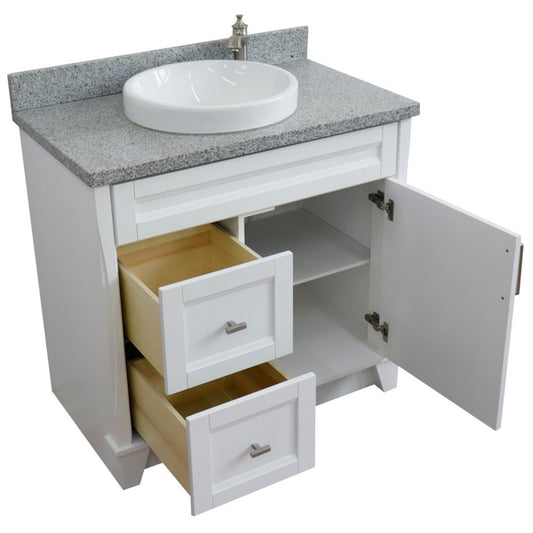 37" Single sink vanity in White finish with Gray granite and Left door/Round Center sink