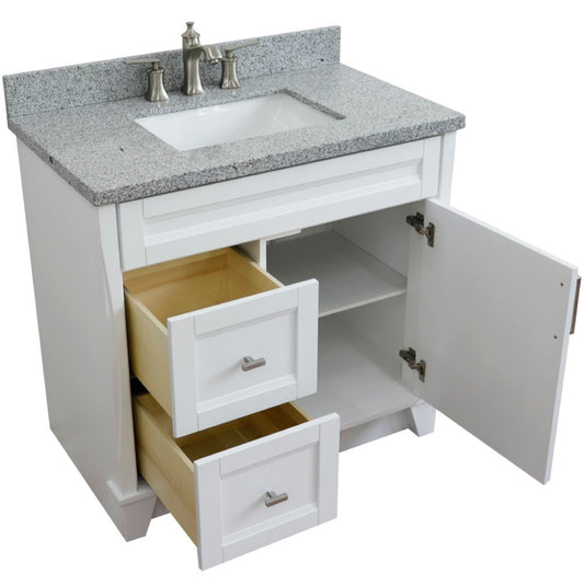 37" Single sink vanity in White finish with Gray granite and CENTER rectangle sink RIGHT drawers