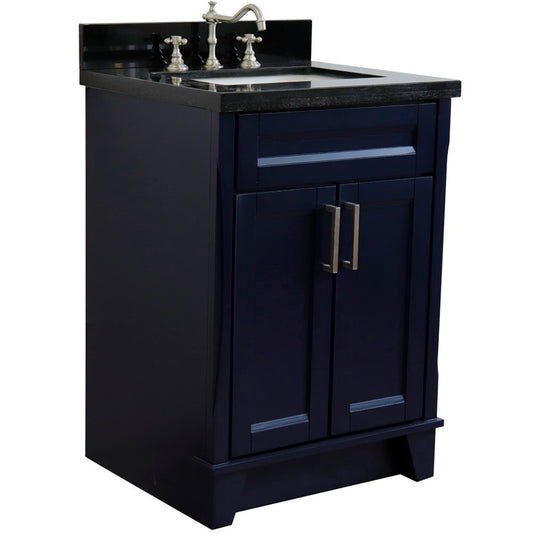 25" Single sink vanity in Blue finish with Black galaxy granite and oval sink
