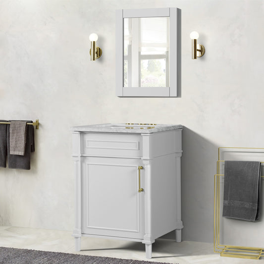 24" SINGLE VANITY IN L/GRAY WITH WHITE CARRRA MARBLE TOP