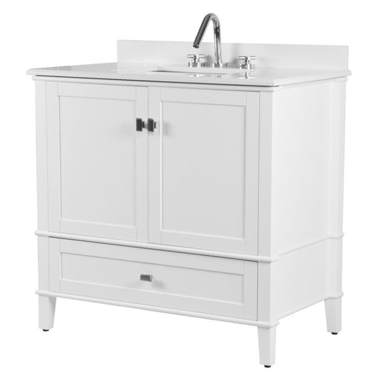 37" SINGLE VANITY IN WHITE WITH ENGINEERED STONE TOP