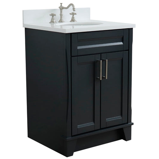 25" Single sink vanity in Dark Gray finish with White engineered stone and oval sink