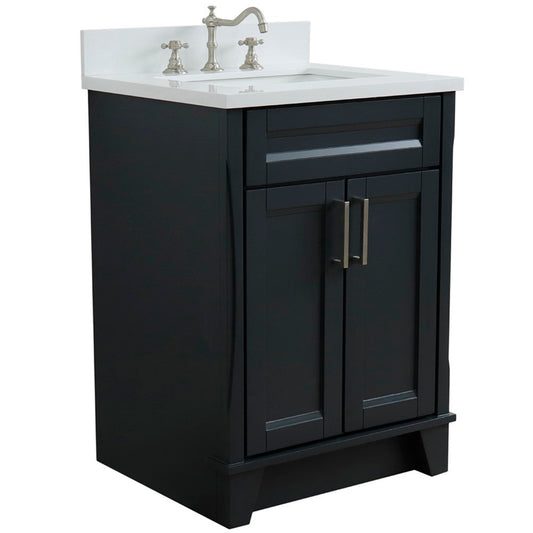 25" Single sink vanity in Dark Gray finish with White engineered stone and rectangle sink