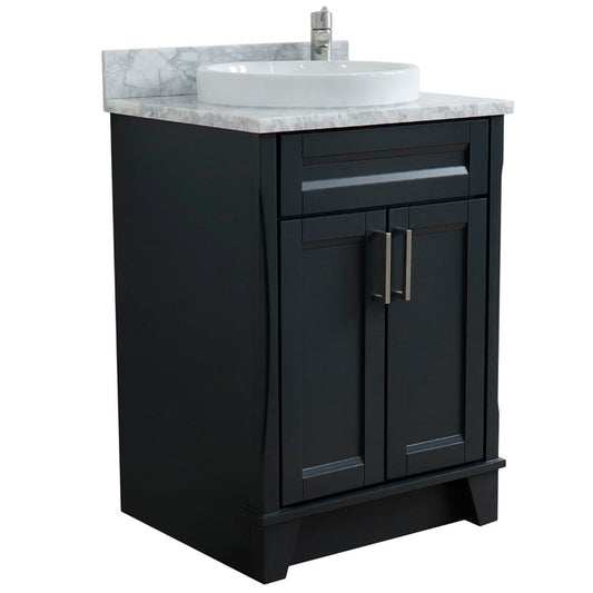 25" Single sink vanity in Dark Gray finish with White Carrara marble and round sink