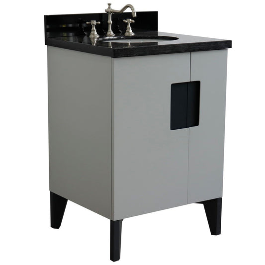 25" Single sink vanity in Light Gray finish with Black galaxy granite and oval sink