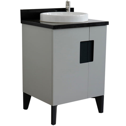 25" Single sink vanity in Light Gray finish with Black galaxy granite and round sink
