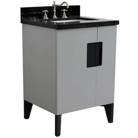 25" Single sink vanity in Light Gray finish with Black galaxy granite and rectangle sink