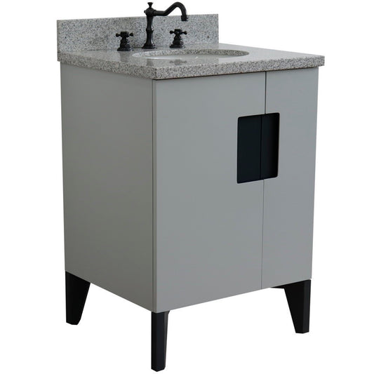 25" Single sink vanity in Light Gray finish with Gray granite and oval sink