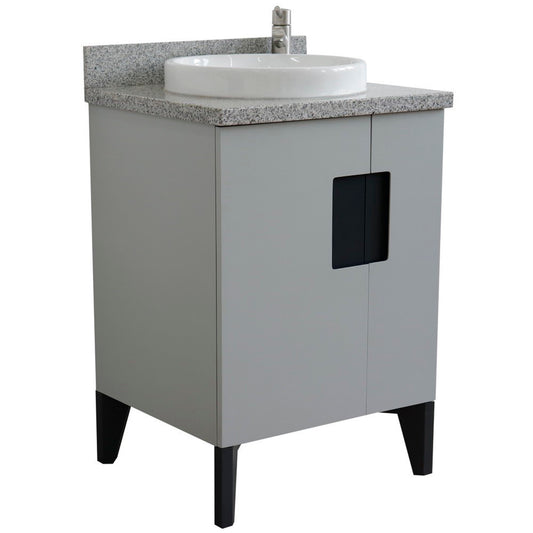 25" Single sink vanity in Light Gray finish with Gray granite and round sink