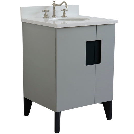 25" Single sink vanity in Light Gray finish with White engineered stone and oval sink