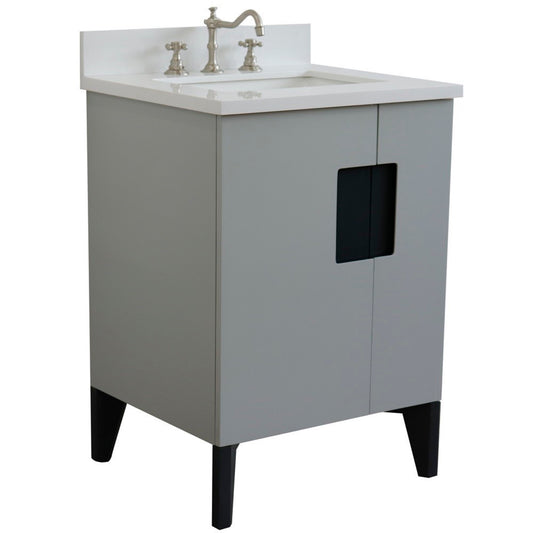 25" Single sink vanity in Light Gray finish with White engineered stone and rectangle sink