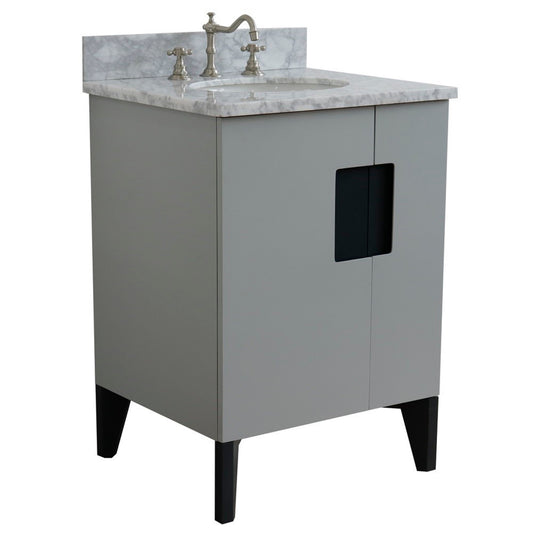 25" Single sink vanity in Light Gray finish with White Carrara marble and oval sink