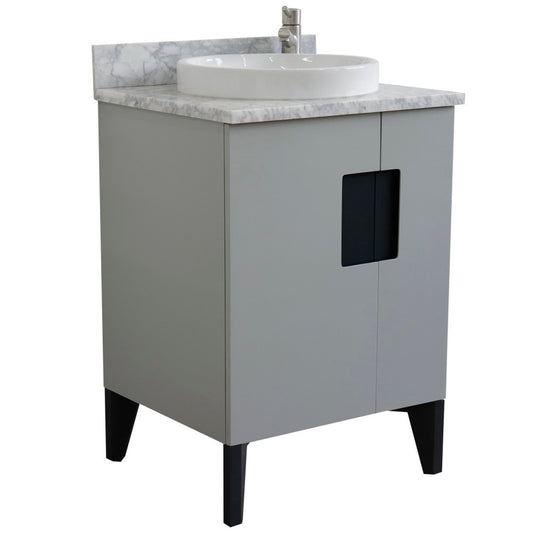 25" Single sink vanity in Light Gray finish with White Carrara marble and round sink
