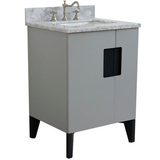 25" Single sink vanity in Light Gray finish with White Carrara marble and rectangle sink