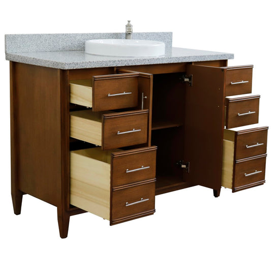 49" Single sink vanity in Walnut finish with Gray granite and round sink
