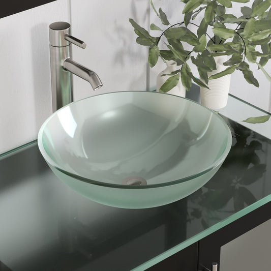 Complete 18" Wood and Glass Vanity Set with Brushed Nickel Plumbing