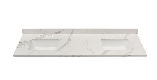 73" Sintered Stone Vanity Top in Calacatta White with White Sink
