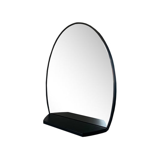 Oval Metal Frame Mirror with Shelf in Matte Black