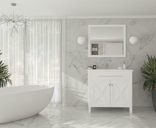Wimbledon 36" White Bathroom Vanity with White Quartz Countertop