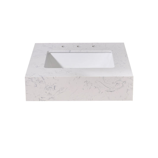 24" Composite Stone Vanity Top in Aosta White Apron with White Sink
