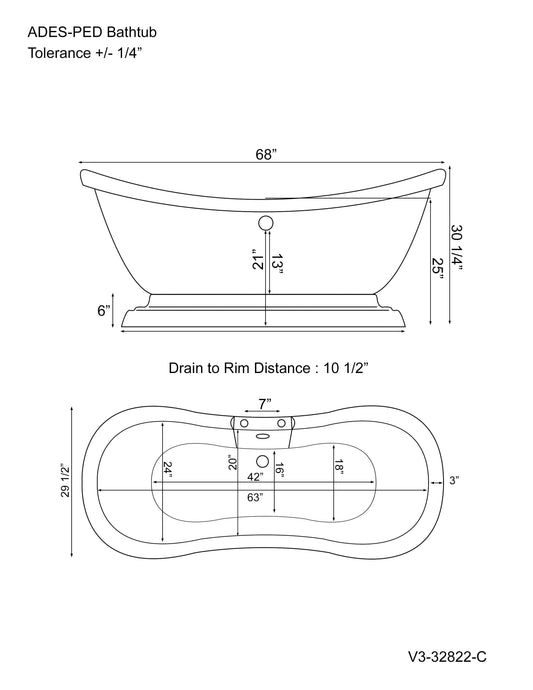 Acrylic Double Slipper Pedestal Soaking Tub with Complete Oil Rubbed Bronze Plumbing Package