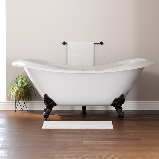 Acrylic Double Slipper Bathtub with Faucet Holes and Oil Rubbed Bronze Feet