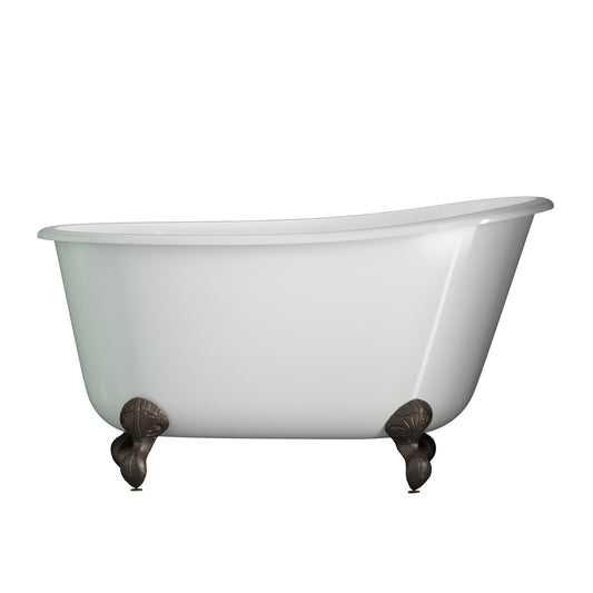 Cast Iron Swedish Slipper Tub 54" X 30" with No Faucet Drillings and Oil Rubbed Bronze Feet