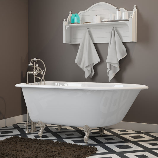Cast-Iron Rolled Rim Clawfoot Tub 55" X 30" with 7" Deck Mount Faucet Drillings and Brushed Nickel Feet