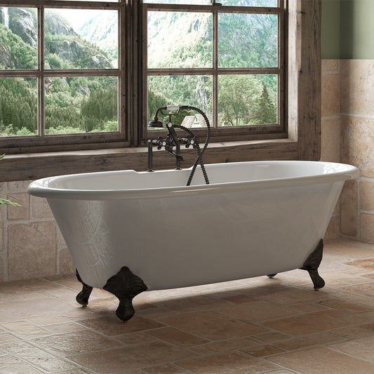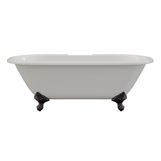 Cast Iron Double Ended Clawfoot Tub 67" X 30" with 7" Deck Mount Faucet Drillings and Oil Rubbed Bronze Feet
