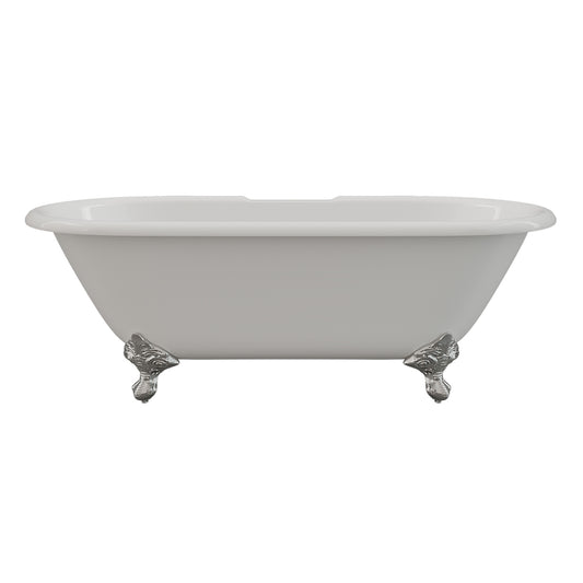 Cast Iron Double Ended Clawfoot Tub 67" X 30" with 7" Deck Mount Faucet Drillings and Polished Chrome Feet