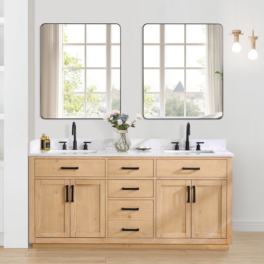 Gavino 72" Double Bathroom Vanity in Light Brown with Grain White Engineered Stone Countertop with Mirror