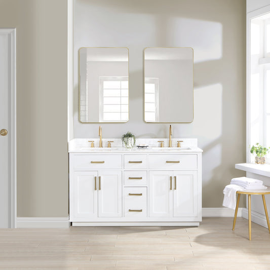 Gavino 60" Double Bathroom Vanity in White with Grain White Engineered Stone Countertop without Mirror