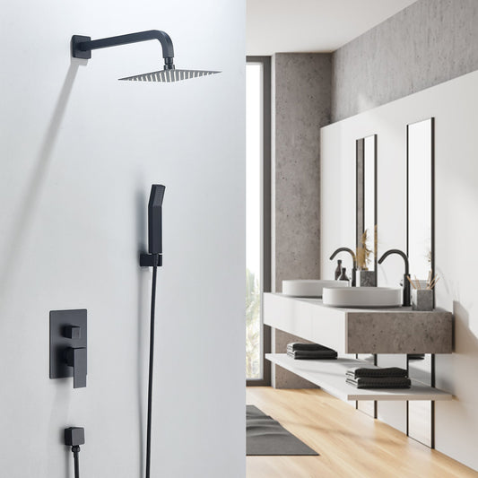 Raeren Complete Shower System in Matte Black with Rough-In Valve with 8" Square Rain Shower Head